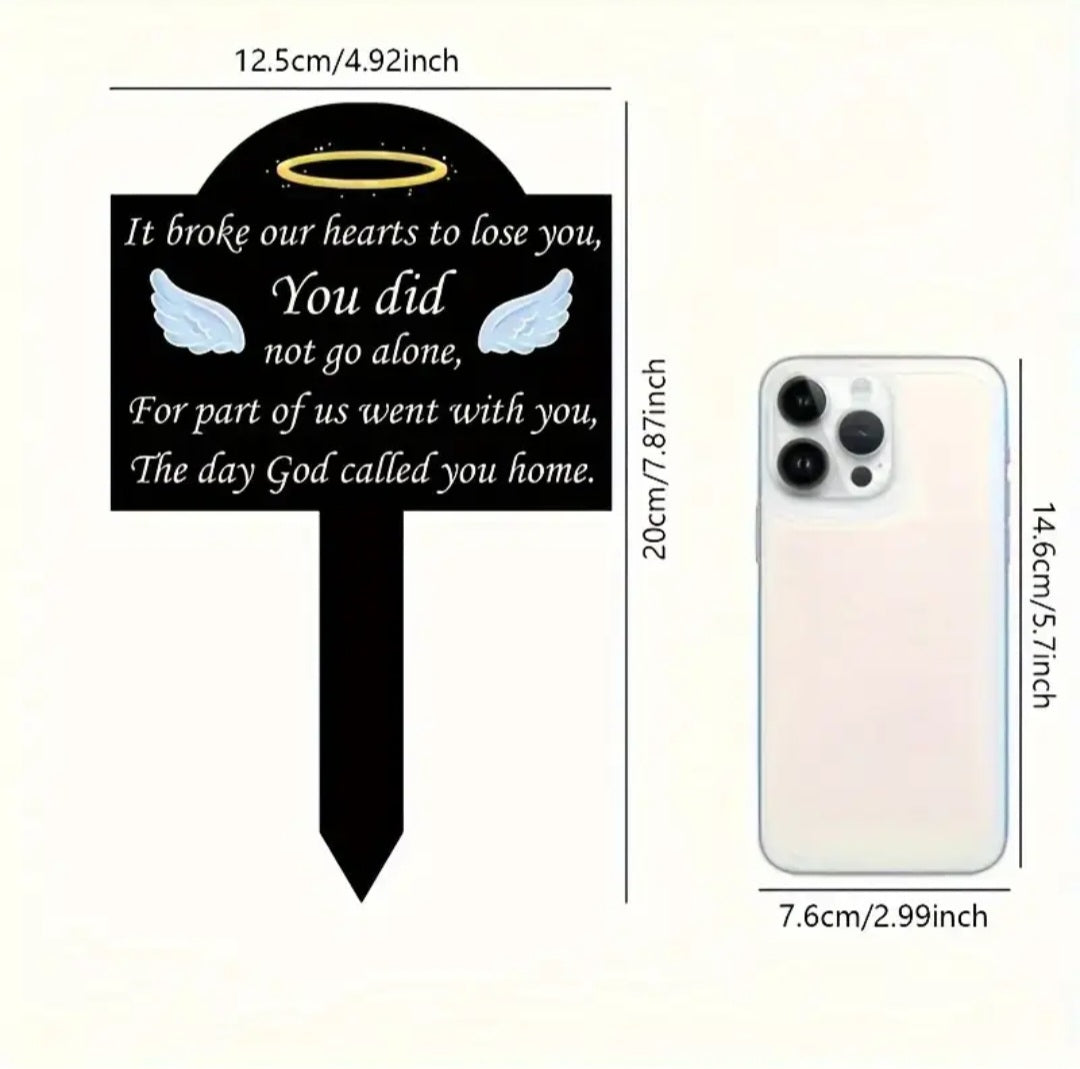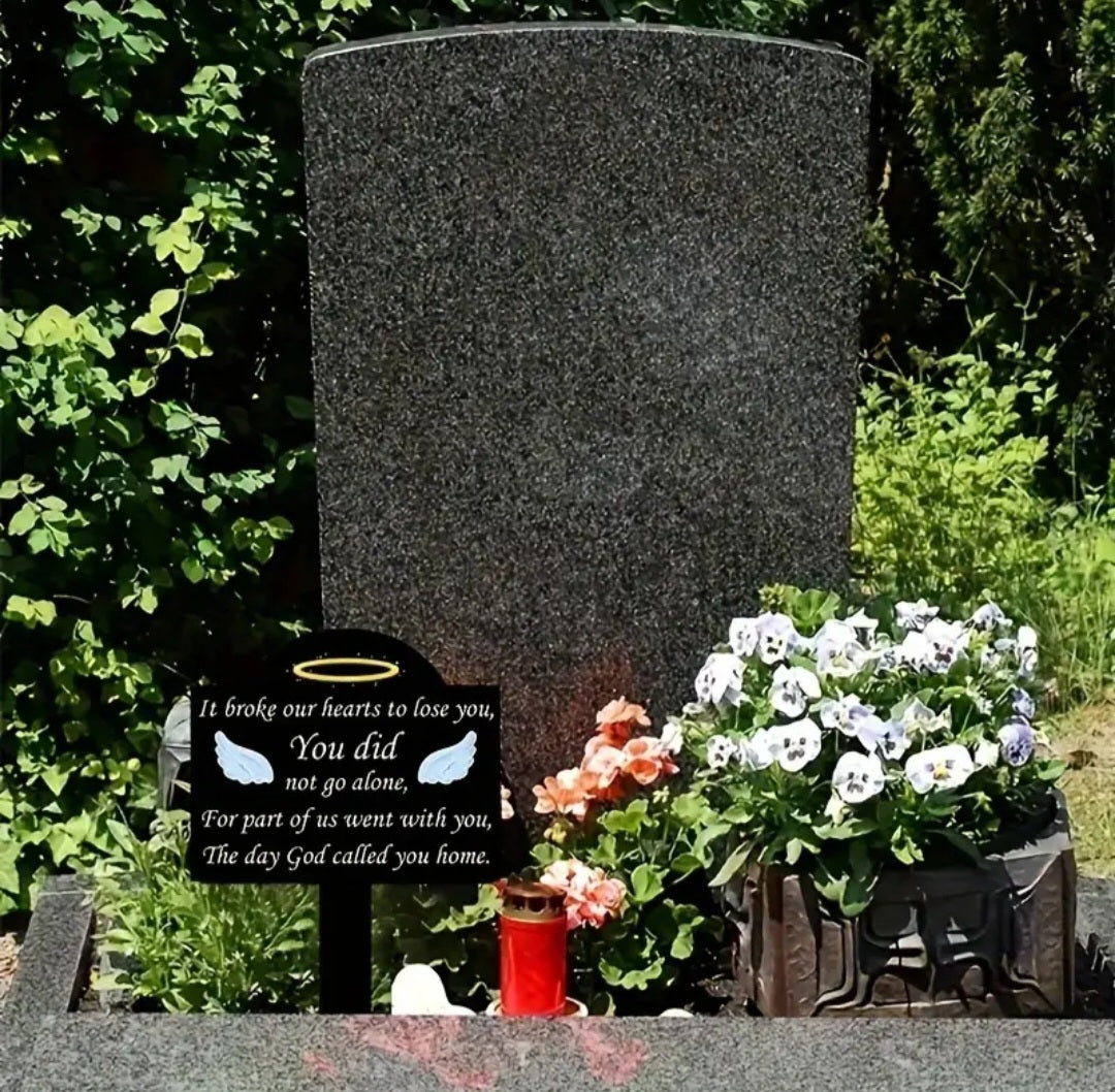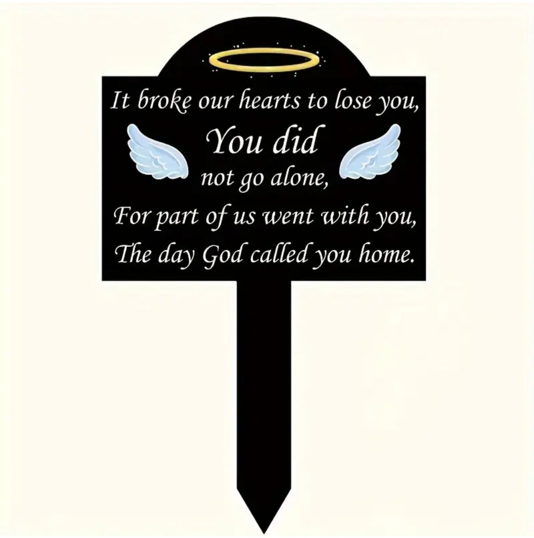 Bring comfort and remembrance with this beautiful grave marker, imprinted with the touching words: "It broke our hearts to lose you, you did not go alone, for part of us went with you, the day God called you home." This beautiful and meaningful grave marker is a symbolic tribute to a loved one who has passed away, offering a lasting remembrance at their final resting place.