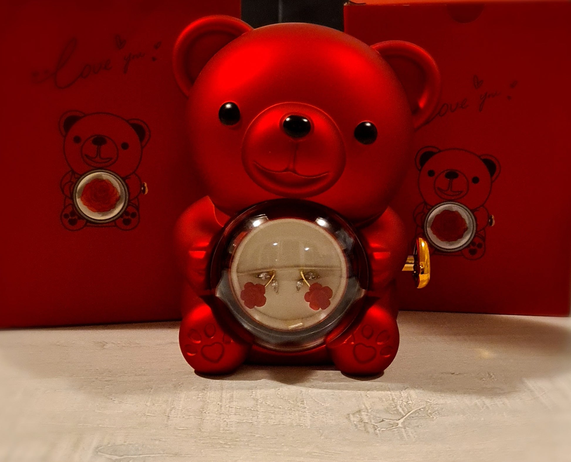 This adorable teddy bear comes with a pair of tiny rose earrings, making it a perfect gift. It's a creative and surprising way to give jewelry as a present, and it will also become a cherished keepsake for your loved one.